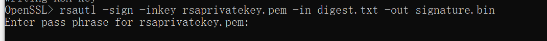 (3)利用上述私钥对摘要digest.txt进行签名,生成签名文档signature.bin