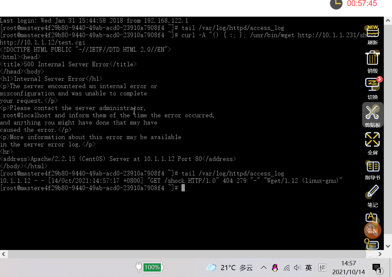 任务一:判断10.1.1.12主机web服务的test.cgi是否存在破壳漏洞;