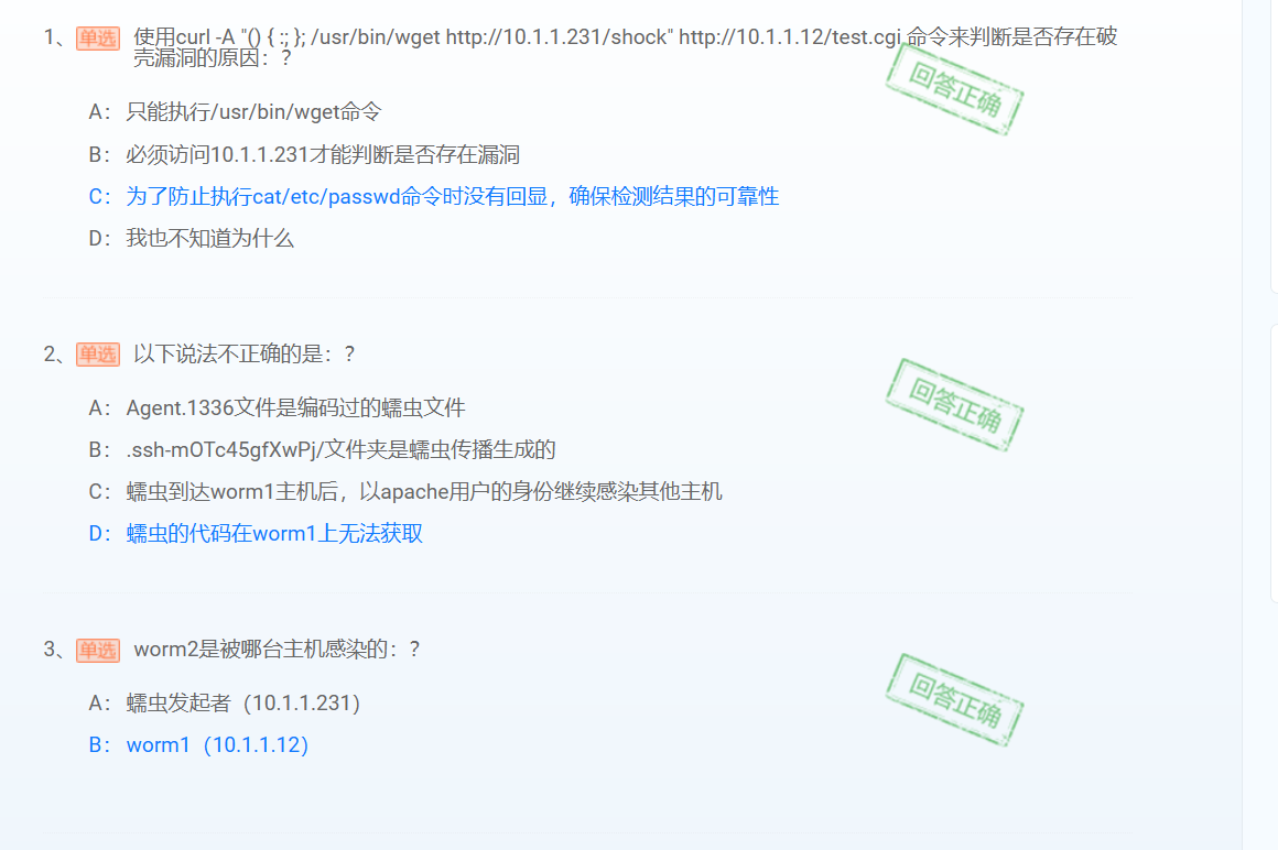 1.使用ssh登录蠕虫发起者主机(10.1.1.231),执行下面三条命令。命令执行结果如下图所示。