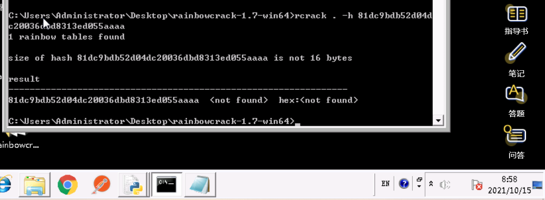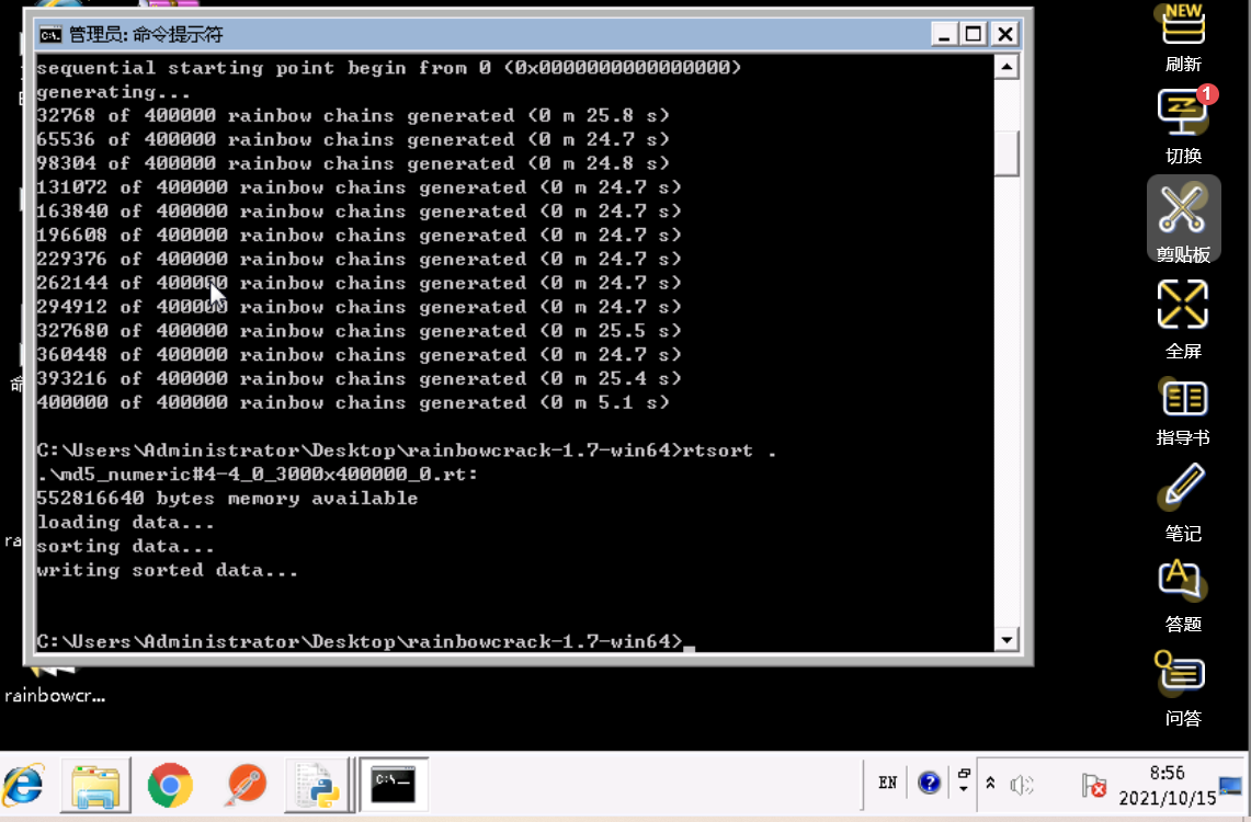 2)理解彩虹表攻击的原理以及进行相应实战。