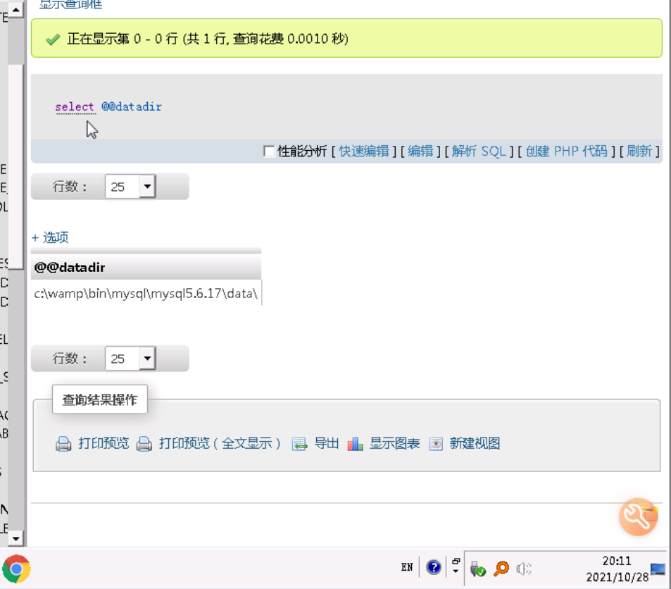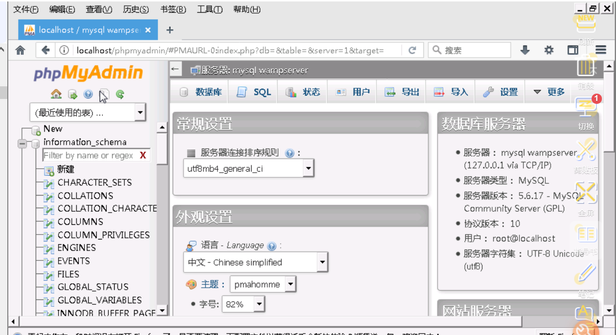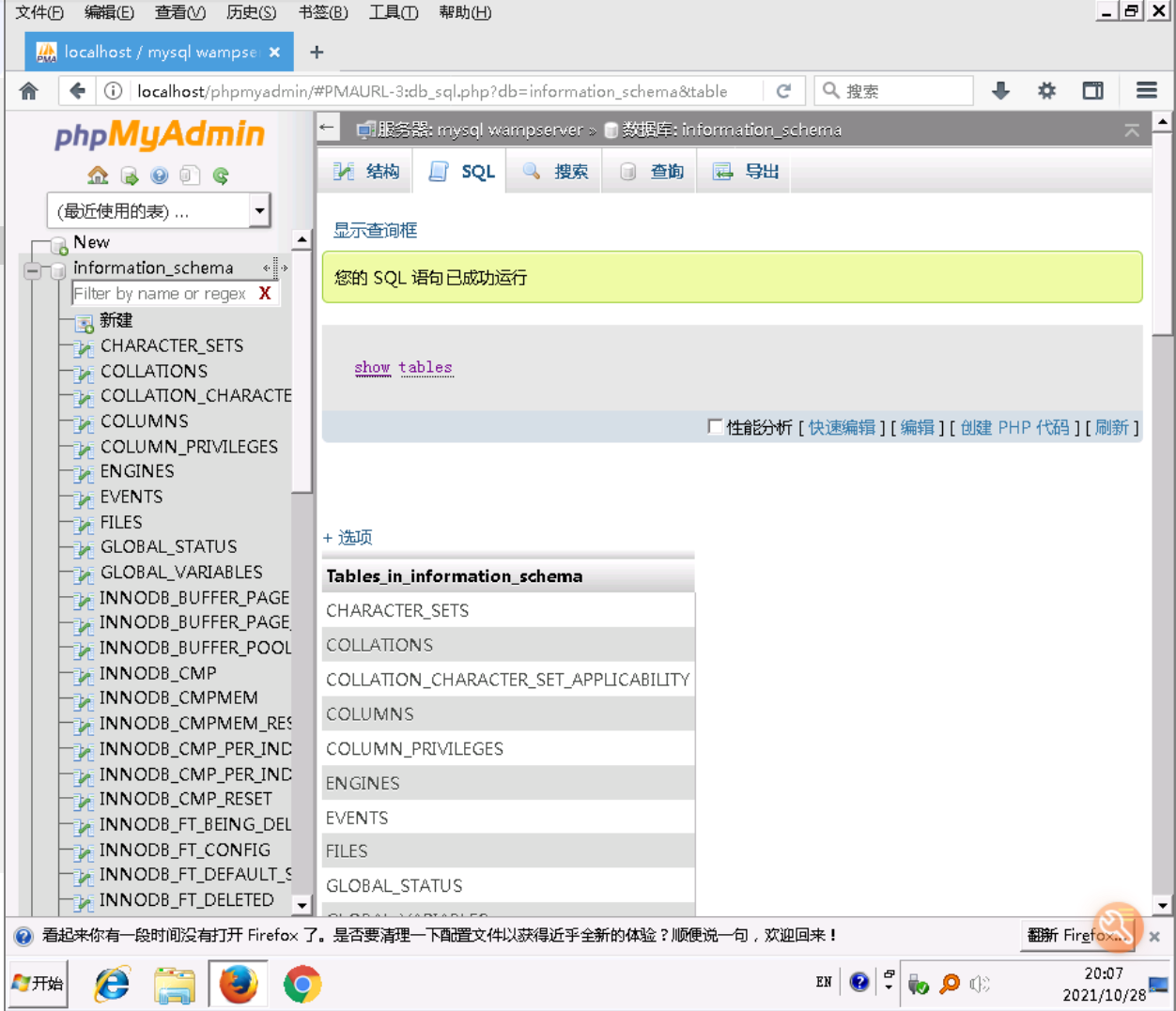 在phpmyadmin中,在左侧点击information_schema数据库。