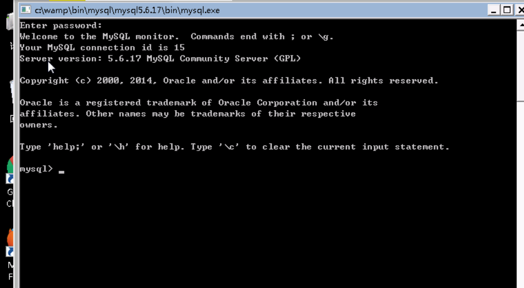 会弹出一个命令行窗口,这就是mysql客户端,此时要求输入密码,由于root的密码为空,直接回车即可。