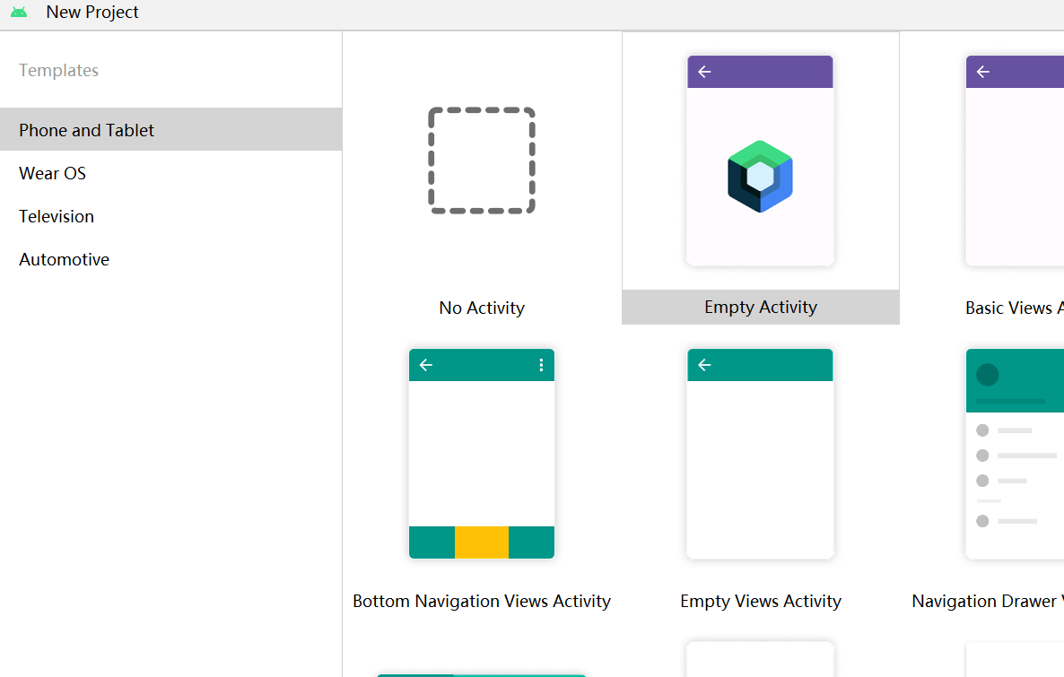 选择EmptyActivity,下一步