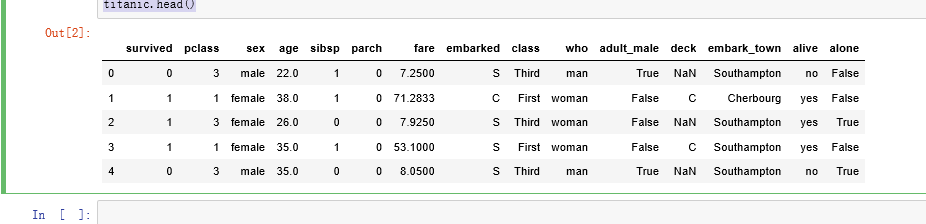 import pandas as pd titanic=pd.DataFrame(pd.read_excel('C:\\Users\DELL\Desktop\高级python\数据文件/titanic.xlsx')) titanic.head()
