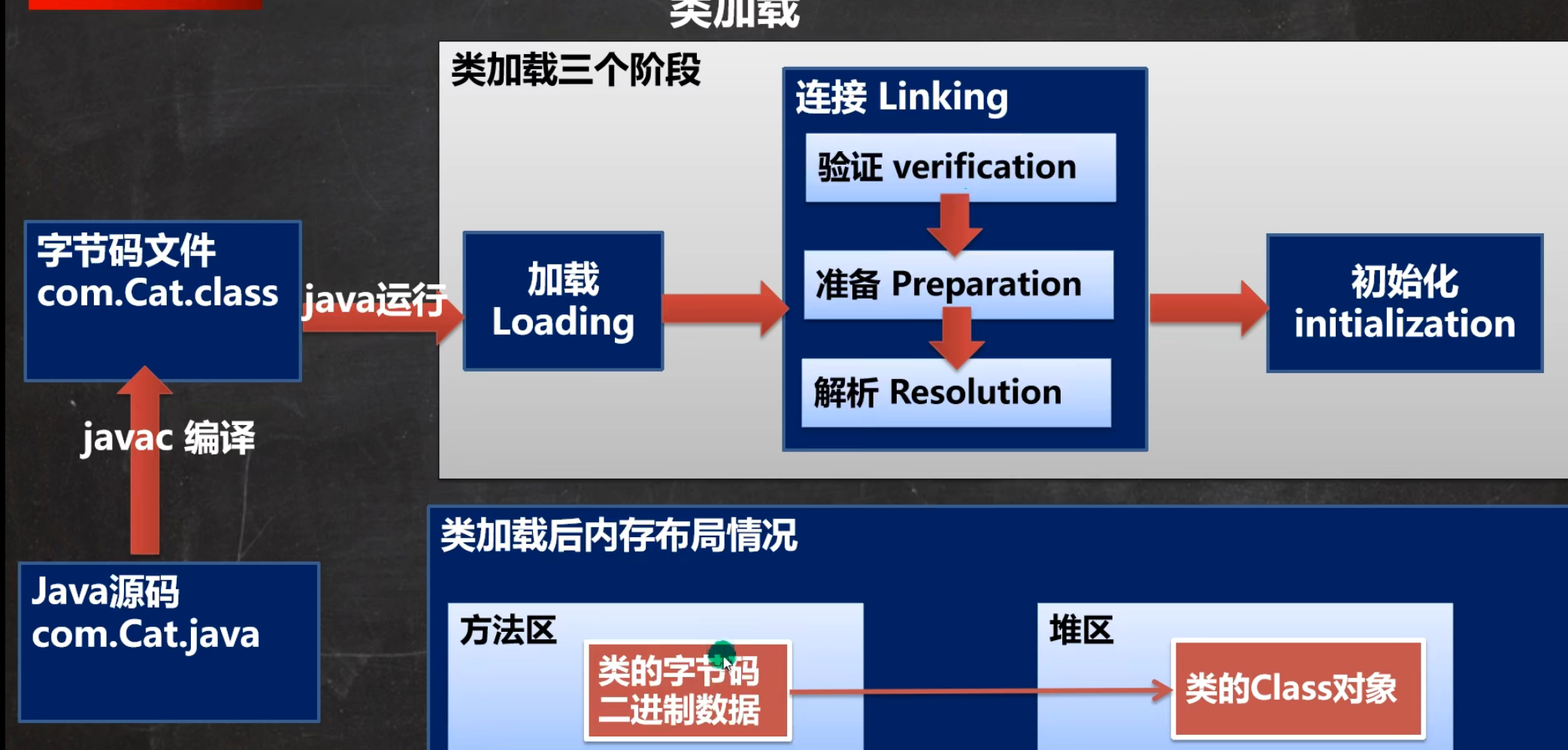 JVM在该阶段的主要目的是将字节码从不同的数据源(可能是class文件、也可能是jar包,甚至网络)转化为二进制字节流加载到内存中,并生成一个代表该类的
