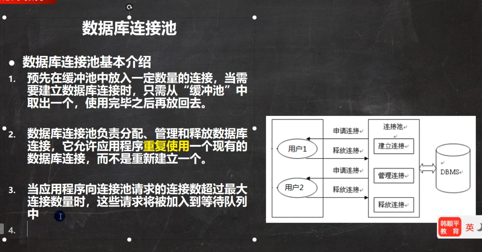 在连接池中关闭不是正真的关闭连接数据库,而是关闭连接池中的连接