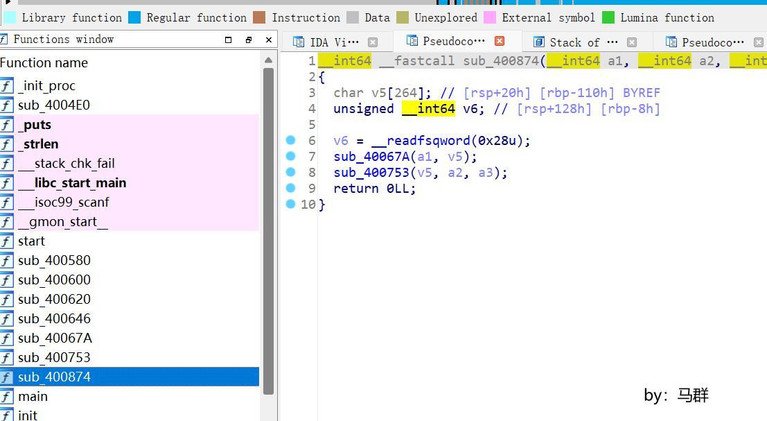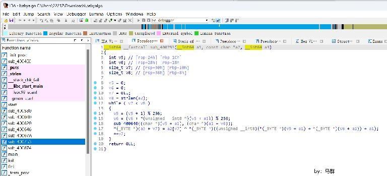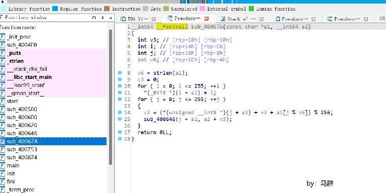 sub_40067A和sub_400753两个函数都是加密算法,sub_40067A就是流密钥的生成;sub_400753是加密。