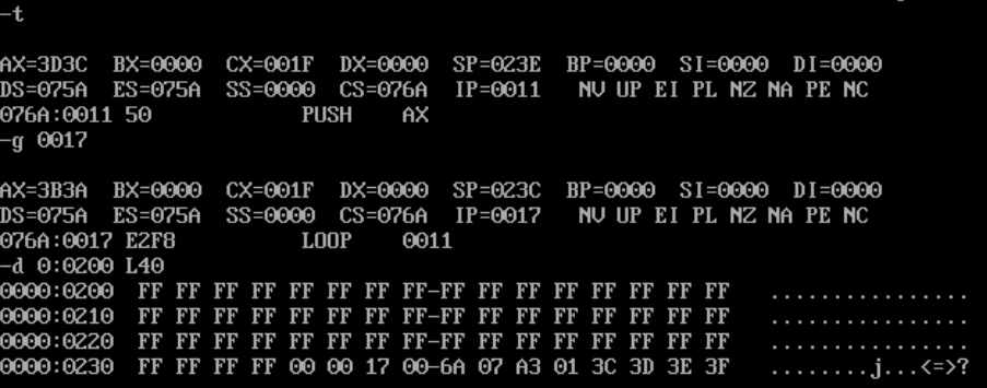 首先将 0:200~0:237 所有字数据赋值为 FF。