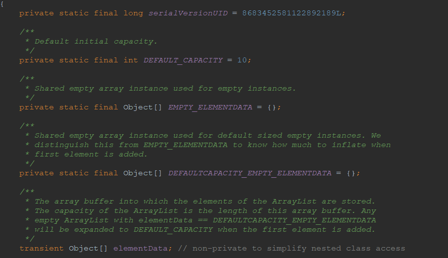 从ArrayList定义的一些属性可以看出默认容量是10,