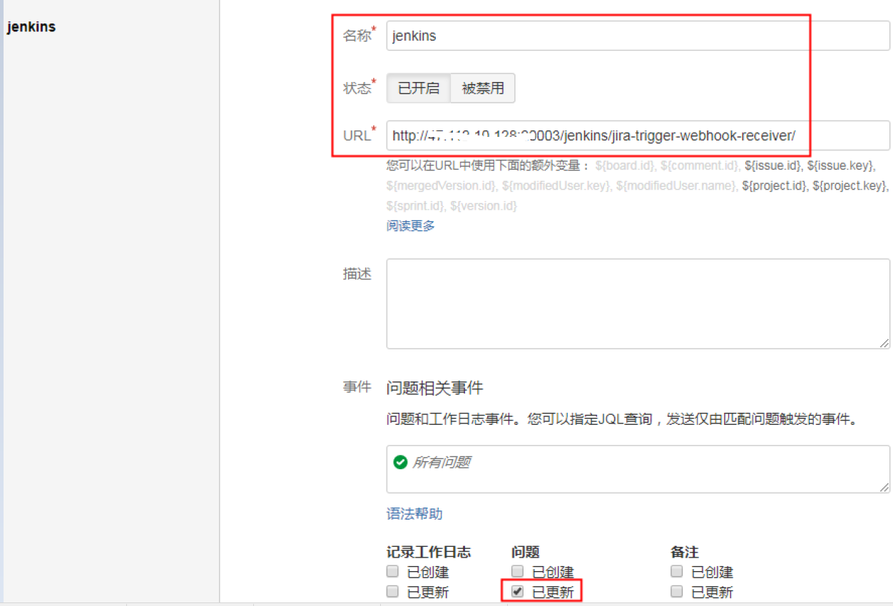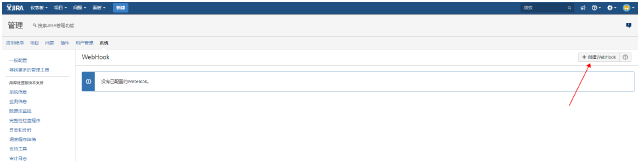 1、配置webhook,即网络钩子,jira->管理->系统->高级,找到WebHook: