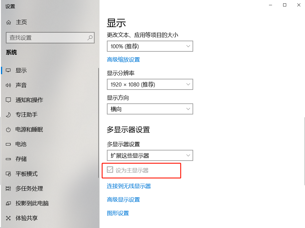 windows扩展屏模式调换屏幕显示(在显示设置里勾选