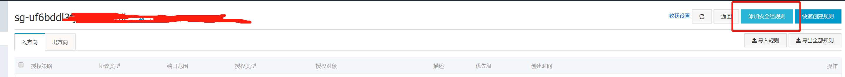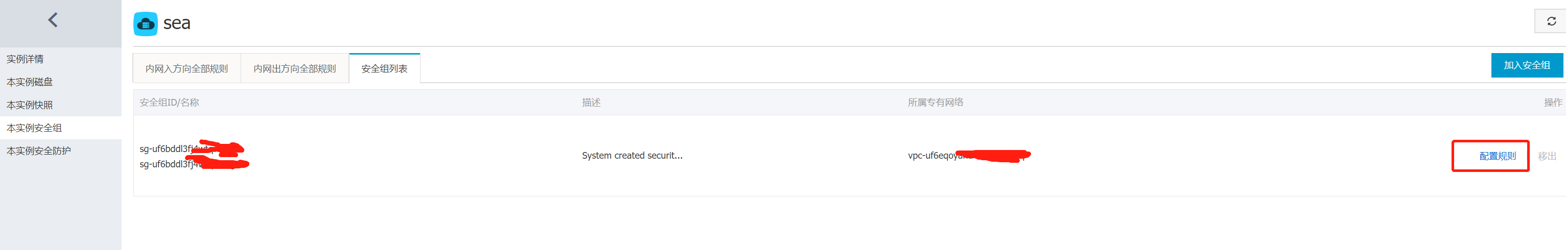 三、进入安全组配置后,点击列表最右边的配置规则按钮