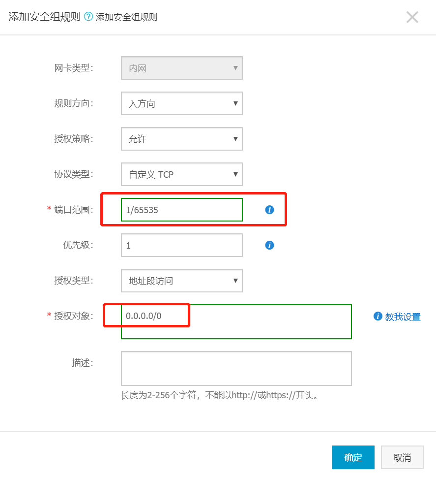 1、端口范围可以自己设置,这里到65535是代表开放所有端口号