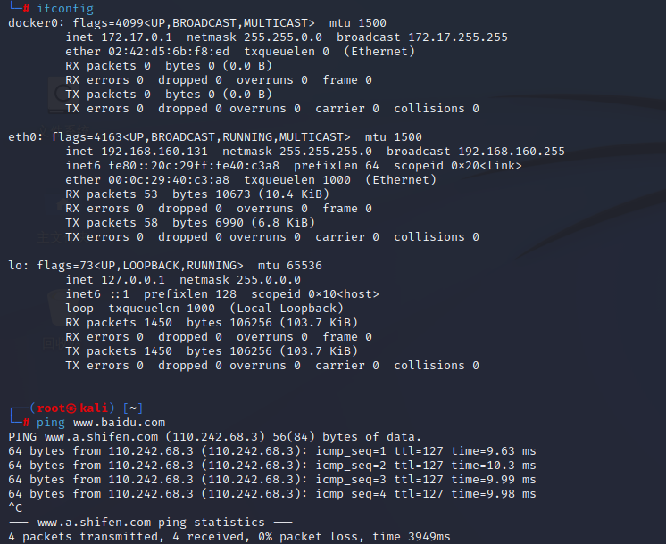 Kali eth0 网卡消失 解决方法记录