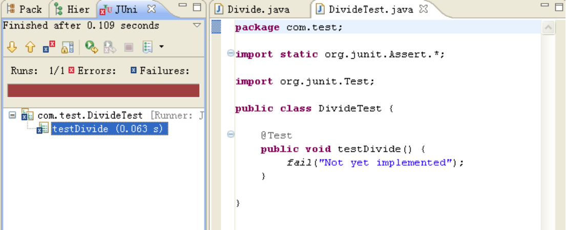 (2) 建一个包com.test 并在此包下建一个除法类:Divide。