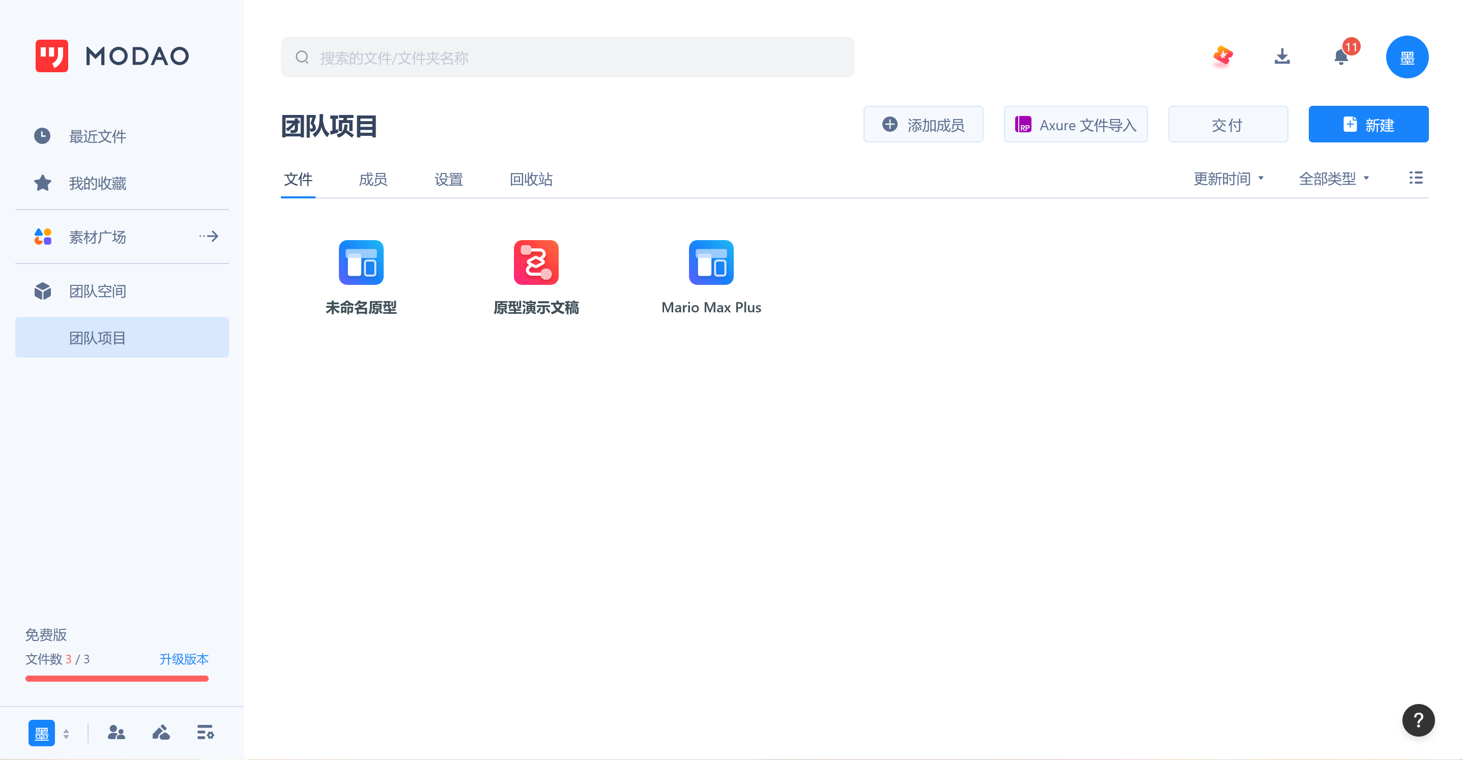 界面简洁,可以简单直接的查阅和管理自己创建的原型文件。