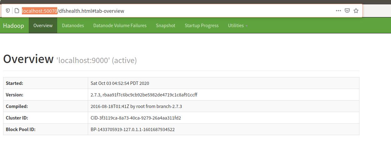 在浏览器中输入http://localhost:50070 查看 如下 则成功