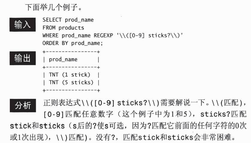 检索 name列中 列值里包含100的行 regexp 表示 其后跟着的是正则表达式