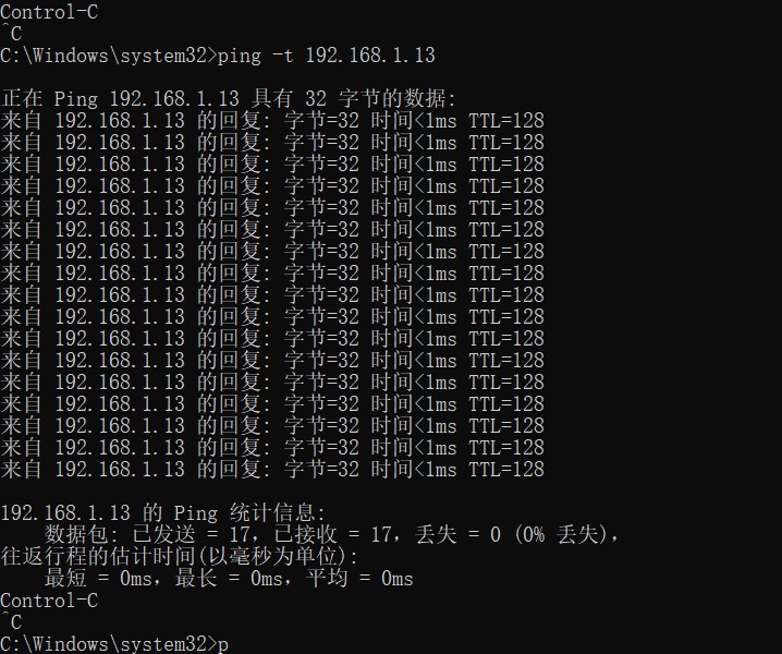 所以我们可以用Ctrl+C中断Ping命令