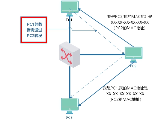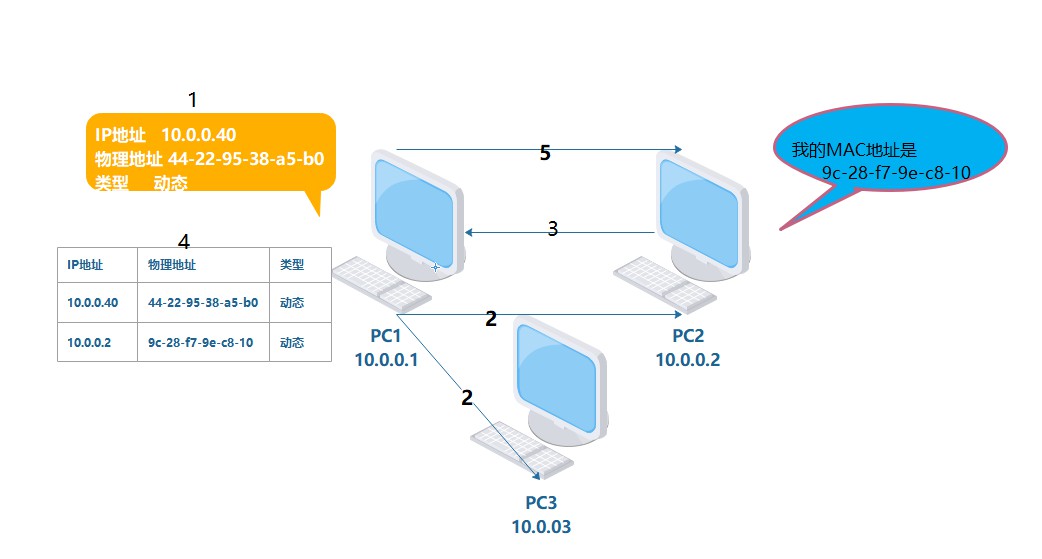 PC1将PC2的MAC地址保存到缓存中,发送数据