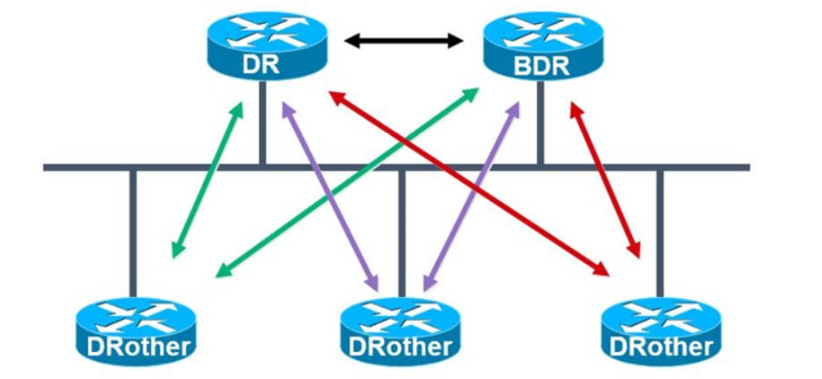 其他路由器(DRothers)只和DR和BDR形成邻接关系