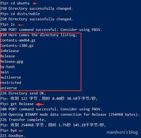 - 接收文件并退出连接。可以看到,当前目录下出现了下载完成的文件。