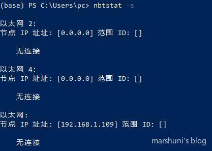 nbtstat -s 查看当前活跃的会话。可以看到,目前本机没有任何NetBIOS连接。这是因为局域网内目前并没有其他在线的主机,同时这一协议在当下已经少有应用。