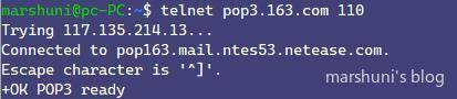 - 使用Telnet命令连接到网易的POP3服务器,端口为110: