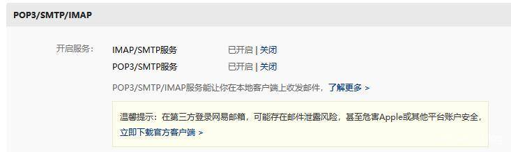 - 分析与解决:需要在网易邮箱打开相应开关。
