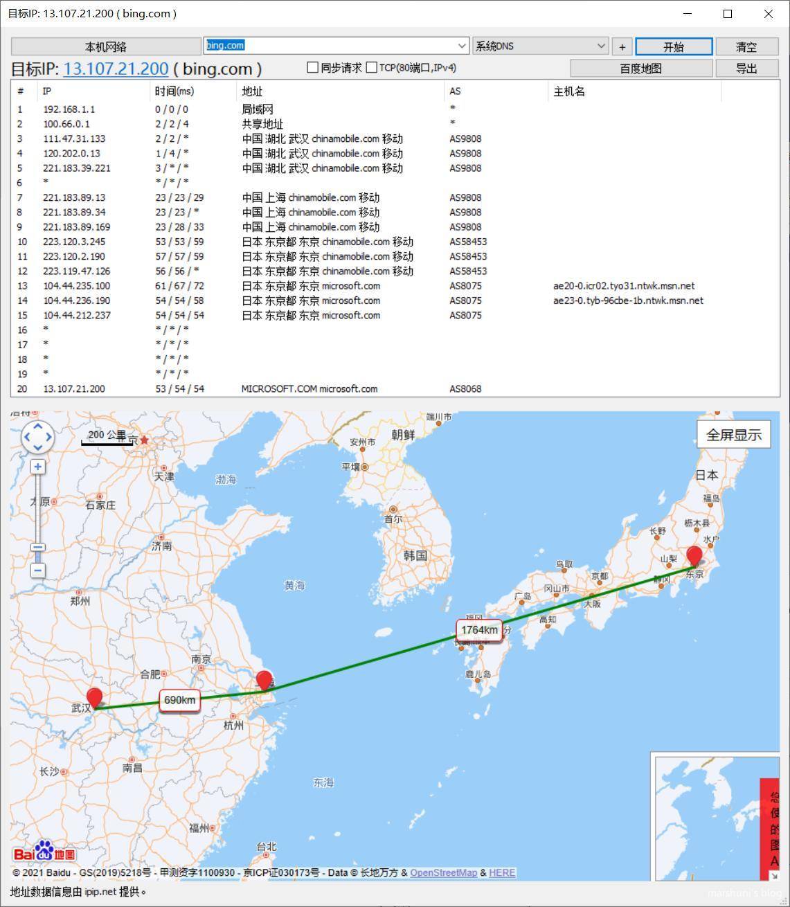 - 市面上也有类似的应用,可结合地图和IP归属地查询工具,帮助我们更直观地分析链路。如BestTrace。