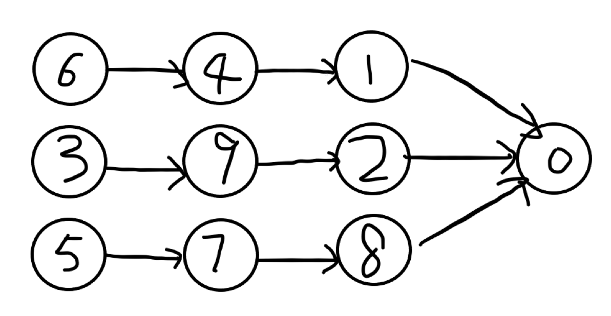如图,用优先队列拓扑排序得到的是 3 5 6 4 1 7 8 9 2 0,但正确答案应该是 6 4 1 3 9 2 5 7 8 0。