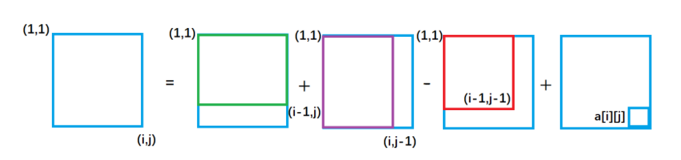 显而易见:s[i][j] = s[i-1][j] + s[i][j-1] - s[i-1][j-1] + a[i] [j]。