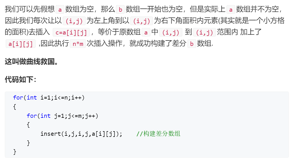 使得a数组中 a[i][j] 是b数组左上角(1,1)到右下角(i,j)所包围矩形元素的和。