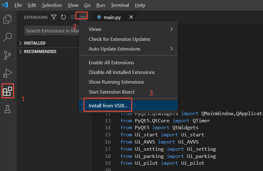 2、电脑无法联网,通过能上网的电脑下载.vsix包,离线进行pyqt插件安装