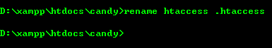 ③ 把htaccess重命名为.htaccess。注意:在Windows中直接改名字不允许以「.」开头,可以在命令行下使用rename命令完成重命名,如下图所示: