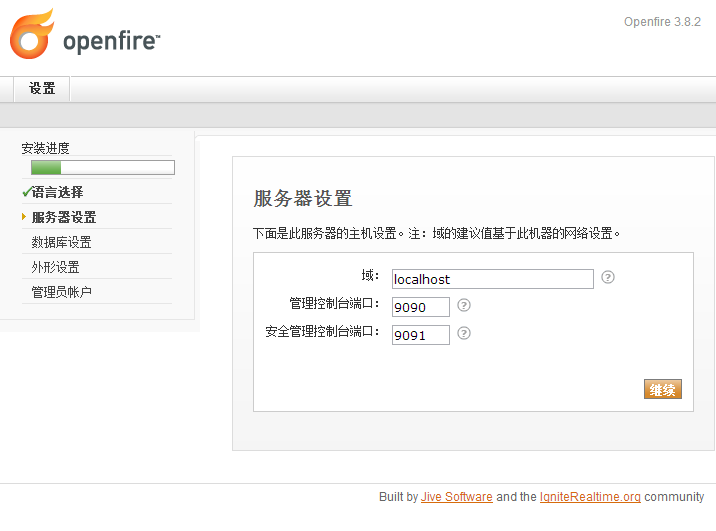 使用「admin」登陆Openfire管理控制台之后,需要做如下设置: