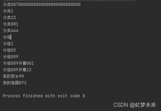 String fileNames[] = {"分类1", "分类22", "分类081", "分类444", "分组", "分组1", "分类0070000000000000000000000000", "分组03", "我的祖国872", "分组009", "我的家乡99", "分组009开幕001", "分组009开幕12"};