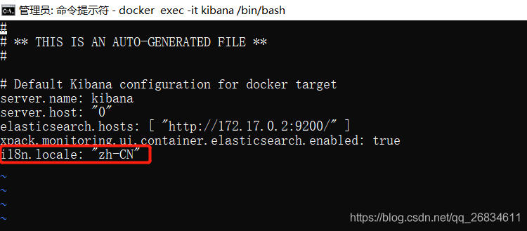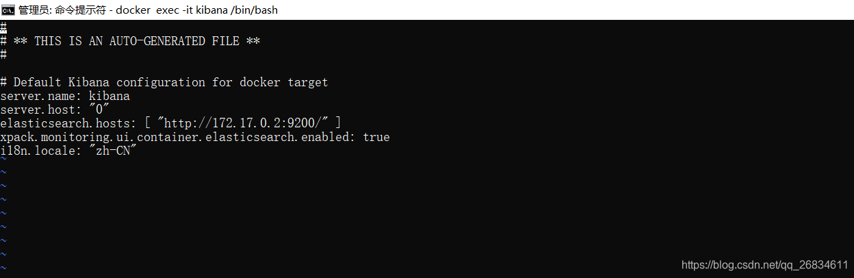 然后重新登录到kibana容器,修改kibana.yml将host设置为es容器的ip即可。