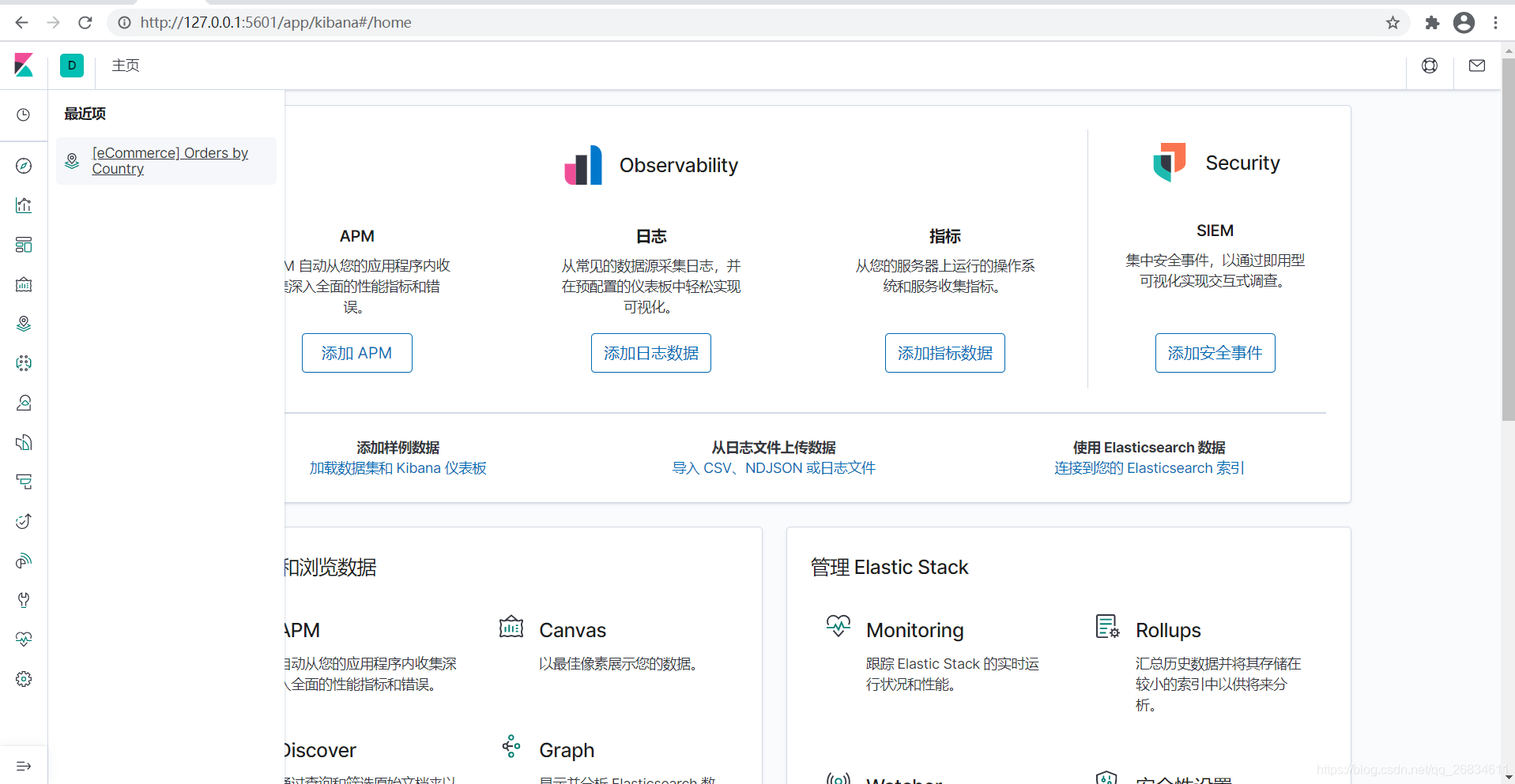 浏览器输入:http://127.0.0.1:5601/ # 端口号根据你启动kibana的决定
