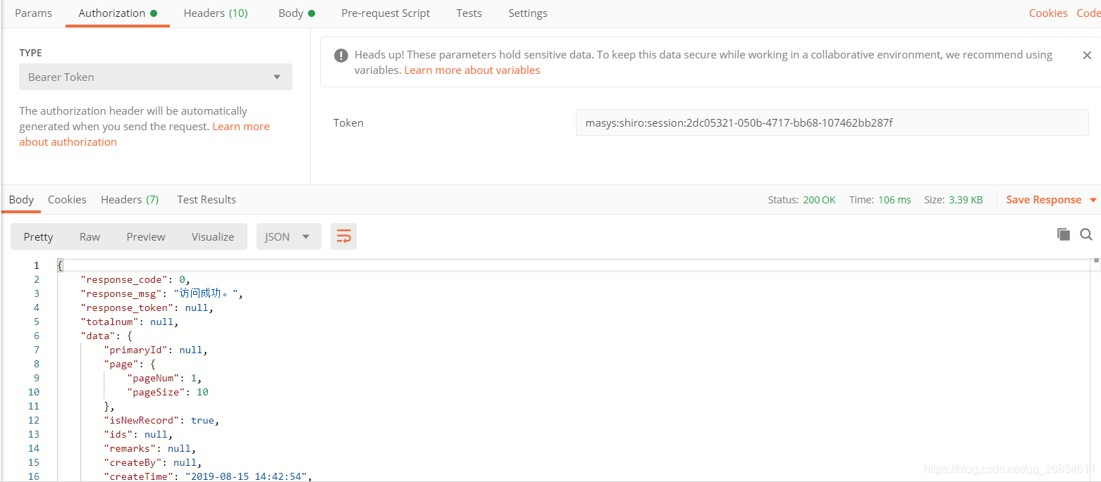 或者 Authrization 中选择 Bearer Token 把token携带过去