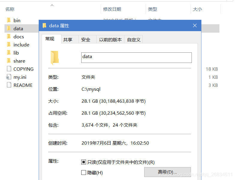 二.更改MySQL配置文件My.ini中的数据库存储主路径