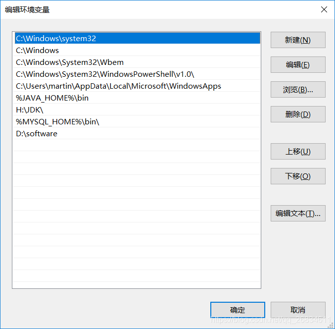 然后在path中使用%MYSQL_HOME%\bin引入,如果直接编辑文本需要注意用;分号来分隔