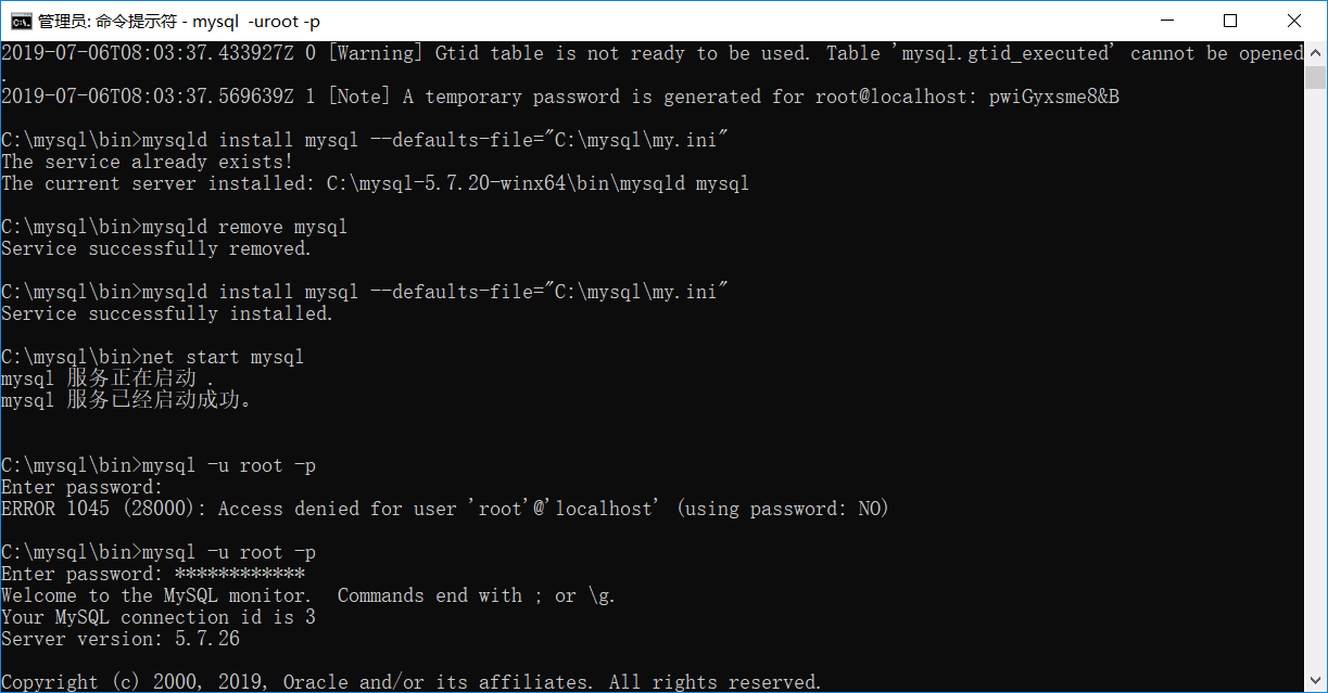 【mysql数据库】win10安装mysql5.7.26x64解压版
