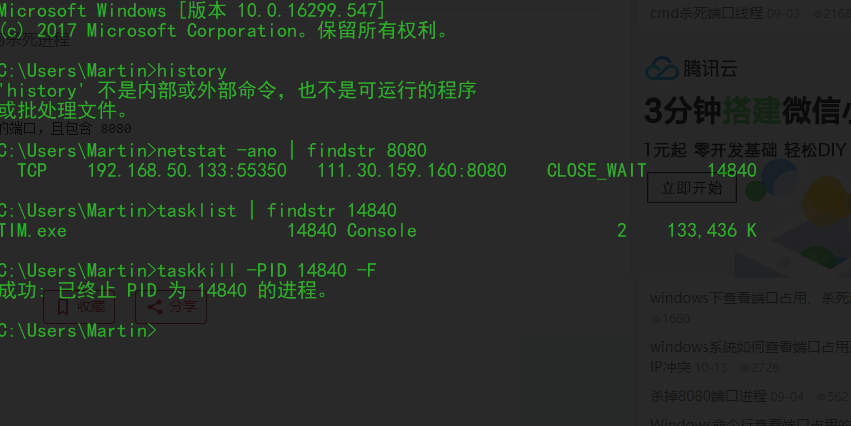 在Linux下很容易,笔者记录下,在Windows10下如何杀死进程