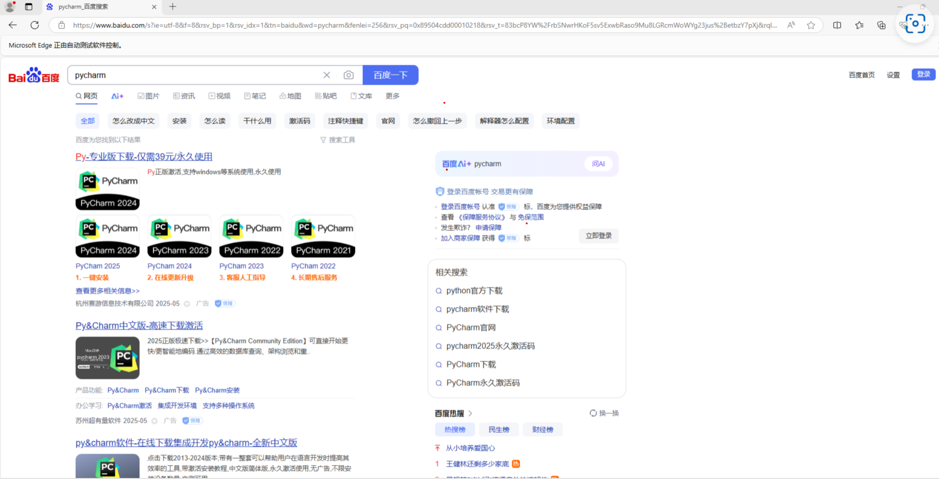 测试工具: Selenium,edge浏览器驱动,pycharm。