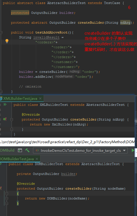 Factory Method 经常会被 Template Method 【DP】调用,为了摆脱类层次中的重复代码而进行的重构常常