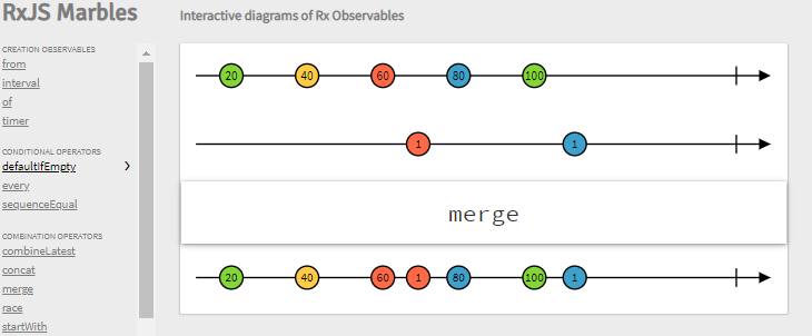 2. merge() 使用场景, 遵循 Rx 契约,即便底层的流同时发布值,也能保证事件是序列化的。 .p62 mergetDalayError 保证收集所有的异常.不仅仅是第一个,并将它们封装到 rx.exceptions.CompositeException.