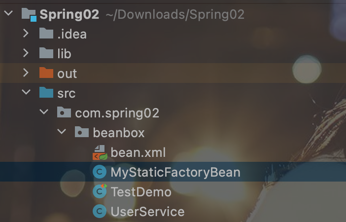 <bean id="UserService2" class="com.spring02.beanbox.MyStaticFactoryBean" factory-method="createUserService"></bean>